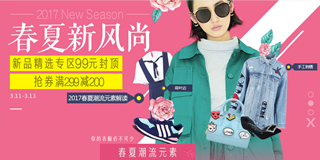 1号店2017春夏新风尚服饰鞋包专场,新品精选专区99元封顶,抢券满299减200元。1号店目前有一个2017年春夏新风尚的专场促销活动,服饰鞋包、手表配饰等产品都是好价,男女品类都有。