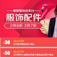京东保暖服饰品类日,2件8折,3件7折!京东目前开启了保暖服饰品类专场促销活动,活动优惠力度为2件8折,3件7折;页面可领取满199元减30元优惠券,满399元减50元优惠券。