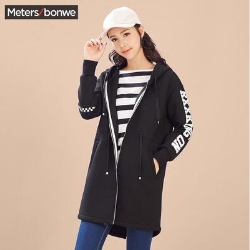 美特斯邦威女士连帽中长款字母印花外套,精选优质面料,质感细腻,舒适透气,开叉下摆设计,时尚大气,斜插口袋,实用美观,腰部点缀腰带收腰设计,宽松的版型不挑人群。