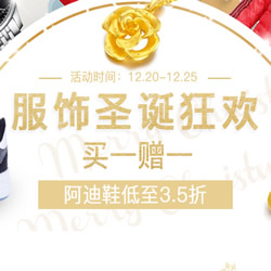 国美在线服饰圣诞狂欢促销活动,买一赠一/阿迪鞋低至3.5折。国美在线于12月20日推出了一场圣诞服饰促销专场,场内阿迪鞋低至3.5折,更有买一赠一的优惠专区。