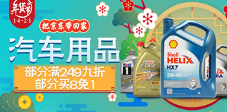 京东商城机油专场,满249九折+买8免1!某东推出了“把某东带回家 汽车用品年货节”的促销活动,活动日期为1月4日-2月3日;涵盖的机油品牌有壳牌、美孚、嘉实多、福斯等;涉及的型号有0W-20、0W-30、0W-40、5W-20、5W-30、5W-40、10W-30、10W-40;优惠力度为满249九折和买8免1。