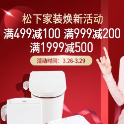 京东松下家装焕新活动,满499减100,满999减200,满1999减500,活动时间:3.26-3.29日。