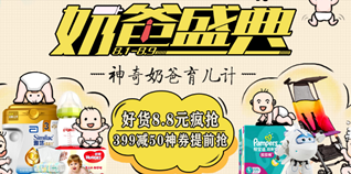 有奶粉专场满499减100元,爱他美、牛栏、雅培多品牌奶粉均有参加、纸尿裤专场满159减30元,包含了尤妮佳、大王等各个阶段的宝宝纸尿裤、此次活动力度不错,多款单品多件下单使用优惠券后可达到不错的入手价格,感兴趣的宝爸宝妈们可以进入选购!