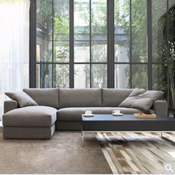 紫茉莉现代客厅转角组合L型布艺沙发,配有优质亚麻外套,质地厚实,天然透气。加厚坐垫和靠枕,坐感舒适,彻底放松。高密度回弹海绵,舒适享受,持久回弹不塌陷。精钢蛇形高弹力弹簧,高强承重,牢固耐用。