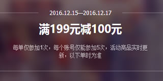 1号店洗护用品专场促销活动,满199减100元。一号店有一个洗护用品的专场促销活动,力度为满199减100元。活动产品包括美容护理、洗发、沐浴、母婴用品、玩具、厨卫清洁、纸、清洁剂等,参与品牌有沙宣、佳洁士、吉列、护舒宝、潘婷、帮宝适等,活动时间截止至12月17日。需要的朋友可以去页面看看!