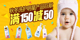 1号店秋冬洗护明星产品巨献,全场满150减50。活动品牌有哈罗闪、宝贝可可丽、施巴、保宁、妙思乐、法贝儿、宝贝可爱等知名品牌,活动产品包括宝宝洗护、爽身护肤、沐浴和衣物清洁产品。还有热销爆款5折以及9.9元等着你哦。