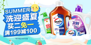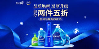 蓝月亮部分商品1件5折,3件5折优惠;滴露部分商品2件6折,3减5折;威露士满3件5折,心心相印部分商品满199-100元优惠。
