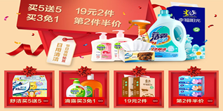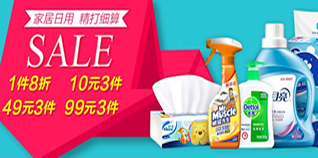 如滴露消毒液1200ml,亚马逊中国原价63元,8折后仅需50.4元。同款,1号店报价69.9元,金象网66.4元,我买网56元。汰渍洁净果香洗衣液1千克,原价22.8元,现49元可购3件,折合16.4元/件。同款,1号店报价22.9元/件,京东商城22.8元/件。
