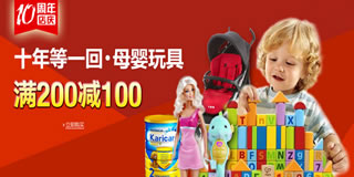 亚马逊十年等一回店庆促销活动正式登场,本次活动时间为2014年8月7日00:00-8月7日23:59。购买活动页面亚马逊自营母婴玩具满200减100,优惠码【MANJIAN100】,结帐时请输入优惠码享受折扣;本次活动仅限亚马逊自营商品,第三方卖家和Z实惠商品除外。这次活动的力度不错,有兴趣的朋友值得去看看!