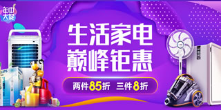 苏宁生活家电钜惠,两件85折/3件8折。苏宁易购目前有场生活家电促销活动,全场两件85折和3件8折的力度。
