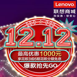 联想商城双12爆款抢先购活动专场,高优惠1000元/享3或6期花呗免息。联想商城现有一个双12电脑专促,场内高优惠1000元,另外还可享3或6期花呗免息。
