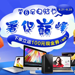 国美在线第六届电脑节暑促,指定商品下单立返100元现金。国美在线8月21日开启了第六届电脑节,场内指定商品下单立返100元现金。