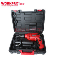 万克宝WORKPRO两用手电钻电锤W13030502, 500W强劲电机,满足所有家庭钻孔需求。高精度专业夹头,使用寿命长,避免批头打滑的风险。双档位(平钻、冲击钻)切换。电子五级调速开关,方便控制启动,定位更快捷。
