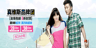 活动商品很多都是好价,且单件免邮,所以很多实惠的商品都在中!真维斯Jeanswest女装时尚弹性修身瘦腿牛仔裤JW-25-281503,两色可选,京东商城报价39元包邮。真维斯2014夏装新款男装全棉舒适圆领驳幅织间短袖T恤JW-42-173525,多种颜色可选,特价仅售35元包邮,也很实惠,值得入手。