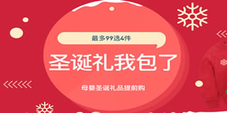 考拉海购母婴圣诞礼品街专场,多99选4件。网易考拉海购目前推出了一个母婴圣诞的专场促销活动,活动页面玩具图书、童装童鞋、服饰营养品、洗护喂养、居家出行、孕妈用品、纸尿裤等产品均可享受99元4件的优惠。常见的小猪佩奇、费雪、小恶魔、B.TOYS、芙蓉天使、新生、卡特等品牌均参与活动,家里有宝贝的辣妈们赶紧来围观吧!