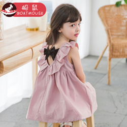 船鼠夏装2018新款儿童裙子童装女宝宝,后背V领设计 甜美蝴蝶结装饰,花边小圆领,甜美花边装饰,柔软贴身,穿着舒适。简约无袖设计,清新舒适,凉爽自在。纯棉材质不会让宝宝的肌肤产生不适,穿着更轻松自在。