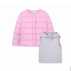 巴拉巴拉儿童羽绒服秋冬童装,无领羽绒外套+连帽毛绒背心内胆组成而成,羽绒服外套填充90%白鸭绒,轻薄保暖,内胆细节含磨毛,柔软亲肤,舒适保暖。