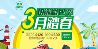 京东自营功能箱包季专场,满399减120,满999减300,叠加199-20优惠券。京东目前有个自营功能箱包的专场促销活动,力度为满399减12,满999.00减300元,叠加满199减20元的优惠券,页面还有爆款专区。爱华仕、法国大使、美旅、新秀丽 等品牌均有参与,活动时间为3月27日-3月31日,有需要的可以关注下!