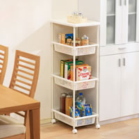 日本环保材质,四层多用置物架,分类收纳,可以放置蔬菜,洗菜盆等,缕空透气设计,不易滋生细菌,窄型设计,上下层高都可以调节,有效收纳也是一种能力。产品长宽高尺寸单位毫米:335*485*1125。