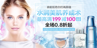 唯品会水润美肌养成术,美妆护肤联合大促,全场0.8折起,高满199立减100元!养成迷人女神,从肌肤开始,唯品会水润美肌护肤推新品,同享更多优惠哦!活动期间,全场0.8折起,并有满减专区,高满199元立减100元哦!秋冬保湿专场满299元立减100元,优惠上不封顶,韩束、百雀羚、佰草集、美宝莲、卡姿兰、自然堂等热销品牌齐聚一堂!人气美妆专区,全场满199元立减100元,优惠更高惊喜更多哦!活动时间:10.21——10.23!