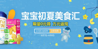 1号店宝宝初夏美食汇,限量0元领/万元返现。1号店日前开启了一场宝宝美食专场,场分商品限量免费领,更有返现爆款专区。