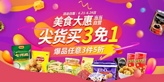 当当网自营美食尖货大促,尖货买3免1/爆品任意3件5折。当当网昨日开展一个自营美食大促,场内尖货买3免1和爆品任意3件5折的力度。商品包含馋嘴零食、进口美食、冲调饮品和粮油调味等美食品类,时间截止至6月26日,吃货们快来选购囤粮吧!