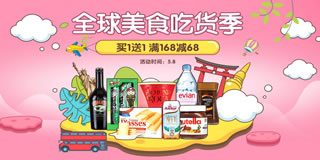 1号店全球美食吃货季专场大促,买1送1/满168-68。1号店于今日开启一个全球美食吃货季的专场大促,场分商品买1送1,满168-68元的活动力度。