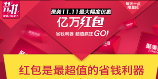 聚美优品11.11亿万红包超值疯狂购,可同现金券叠加使用!聚美双11亿万红包,等你来抢。80元抢100元红包超级券,35元抢50元红包超级券,10元抢20元红包超级券。红包可同聚美现金券叠加使用,可以随时退款,让你放心购买!