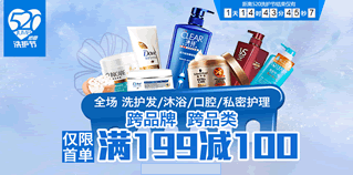 5月20日至21日,聚美优品520洗护节,全场洗护发/沐浴/口腔/私密护理,跨品牌跨品类,购物实付金额满199元立减100元!活动仅限首单,每笔订单多减免一次,详细活动规则点此。