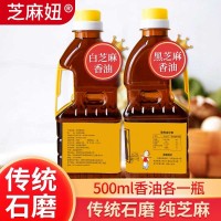 农家小磨芝麻油,白芝麻油500ml+黑芝麻油500ml