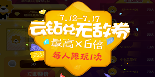 苏宁易购大乐透,中717会员日券,高翻倍12元!苏宁易购717会员日券,高翻倍12元,不会亏的翻倍。玩法:投入不等值云钻,点击“立即翻倍”按钮即可进行翻倍,根据小狮子表情不同获得相应倍数云钻等值券,投入云钻基数×倍数可乘1.5、2、2.5、3、6倍。可投入低50云钻,高200云钻,每增加一档加30云钻。大家可以来试试人品哟~