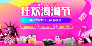 苏宁易购狂欢海淘节大促,国际大牌19.9元限量秒/买三免一/疯狂抢券。苏宁易购今日开启一个狂欢海淘节,场内国际大牌19.9元限量,买三免一,更有多种优惠券任你抢!