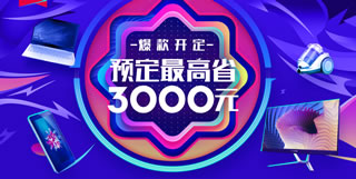 818发烧节预售会场:预定专场高省3000元,定金高翻10倍,还可领取手机、空调专享券,另外还有6期、12期免息券,每日0点开抢。