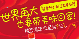 京东商城情满中秋之厨房调味专场,买一赠一/29.9元选5件。京东商城情满中秋之厨房调味,大的买点就是买一赠一、29.9元选5件。另外还有满19.9元送赠品、3件7折活动,手机下单更划算,优惠力度都是蛮大的,大家可以去活动会场逛逛!