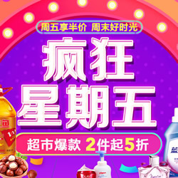 京东超市疯狂星期五全品类促销活动,超市爆款2件起5折。京东超市今日推出了一个疯狂星期五促销活动,全场超市爆款2件起5折。