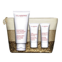 Clarins娇韵诗乳木果身体乳套装,包括娇韵诗乳木果保湿身体乳200ml,娇韵诗手部修护霜30ml,娇韵诗柔滑身体磨砂乳30ml3件。