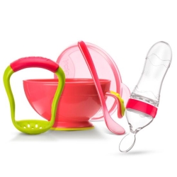 美国努比(Nuby)婴儿硅胶辅食研磨碗餐具套装,婴儿辅食研磨碗具有易研磨,方便清洗的特点,采用半透明碗盖,便于掌握研磨程度,弧形手柄舒适防滑,碗内采用一体成型的压制工艺,安全卫生。