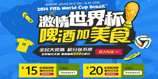为为网hold不住啦,世界杯大促活动兴奋上演!0元区,每日每人限购一份,数量有限,售完即止。瓶酒饮料,零食好价专区转不停;另有凑单好品低至5元,让你目不暇接!礼品券一栏输入:homevv1自营频道全场满60元可抵扣15元;礼品券一栏输入:homevv2自营频道全场满99元可抵扣20元。活动时间:6月24日到6月30日,为世界杯看球的朋友们量身定制的活动,各位球迷们不要错过!