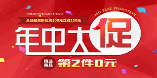 6月24日-6月30日,银泰网年中大促,精选商品第二件0元,全场高折后金额满300元减150元。使用手机淘宝扫码还可得30元银泰宝,在银泰网购物可抵用。活动今天刚刚开始,有兴趣的朋友可以看一看。