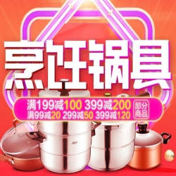 苏宁易购烹饪锅具促销活动专场,满199-100/399-200元。苏宁易购目前正在举行一场烹饪锅具促销活动,优惠力度为部分商品满199-100元,399-200元,99-20元,299-50元,399-120元。