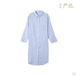 网易严选日式双层纱长裙,主要采用棉质,手感顺滑,平整不易起球。衬衫领修饰脖颈线条,条纹装饰,下摆弧形设计,休闲时尚。