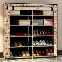 家世比简约现代六层防尘加固加厚无纺布鞋柜鞋架,采用加厚无纺布材质,带卷帘门,可封闭,全面防尘。塑料三通与管架紧密接合构造,易于拆装,较稳固。6层收纳空间,每层一般能放三双鞋,一般1-3人的鞋子还是适用了。