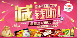 我买网节后补货减钱啦,高立减50元。活动期间,全场进口食品、休闲零食和粮油副食均满128减20、生鲜蔬果满168减30、母婴用品满399减50、百货洗化用品,满199送100元现金券、酒水满199立减50。手机下单满减再用券,活动期间充值还享98折哦。活动力度看似一般,但活动商品基本上没有提价哦。节后需要补货的朋友们,快来减钱吧!