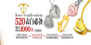 周生生、六福珠宝、周大福、施华洛世奇、Tiffany等国际珠宝大牌均参加此次活动,时间截止至5月21日,快来挑选你的表白利器吧!